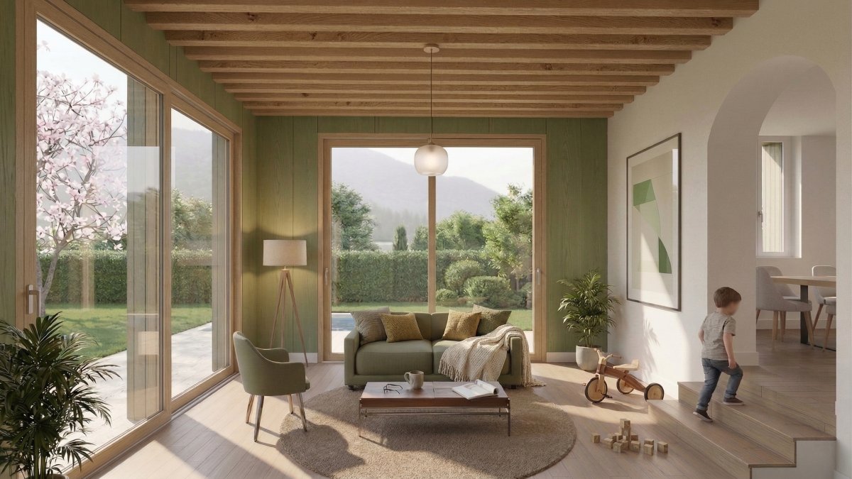 Située à Chêne-Bourg, cette extension de villa s’inscrit dans une démarche de continuité avec l’existant. Le projet reprend le gabarit, la largeur et la toiture à deux pans de la maison d’origine, assurant une intégration harmonieuse dans son environnement. Cette approche est toutefois accompagnée d’une écriture plus contemporaine, marquée par des ouvertures plus généreuses et l’emploi d’un bardage en bois teinté vert, affirmant subtilement l’identité de l’extension. Développée sur trois niveaux — sous-sol, rez-de-chaussée et étage — l’intervention implique des adaptations de l’existant afin de garantir une connexion fluide entre les espaces. Dans le prolongement extérieur, une piscine chauffée implantée au sud de la parcelle vient compléter le projet, offrant un cadre de vie ouvert sur le jardin et bénéficiant d’un ensoleillement optimal. L’ensemble propose ainsi une réponse mesurée, respectueuse du contexte et tournée vers une amélioration qualitative des espaces de vie.